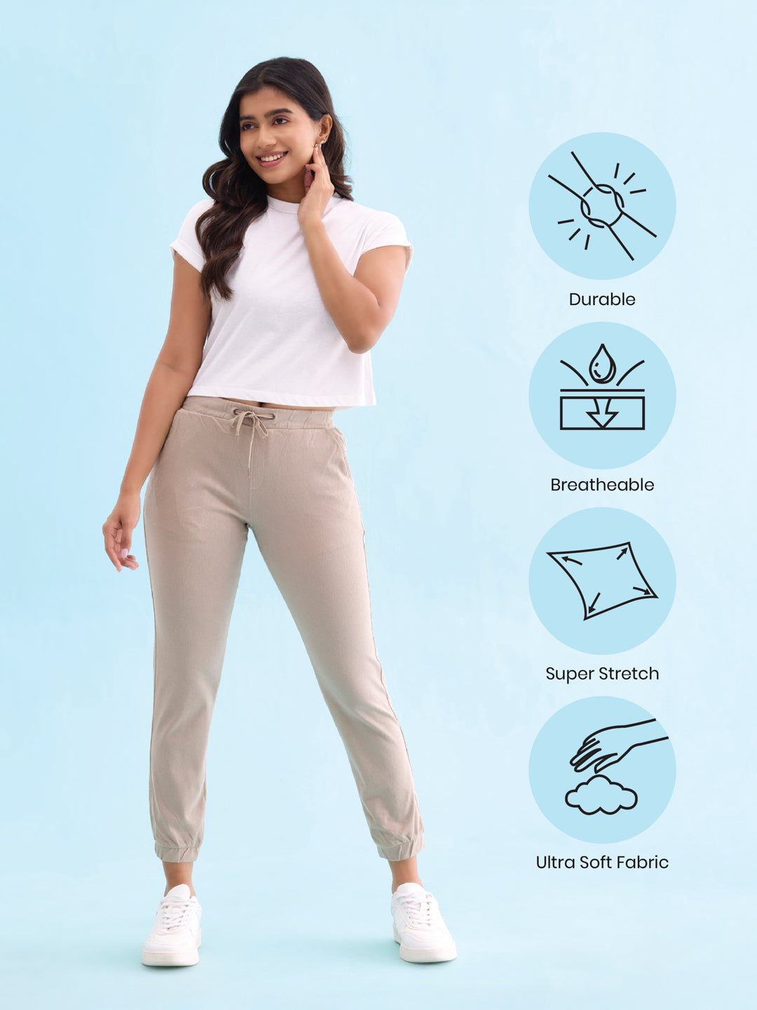From running errands to casual chilling with friends, Solid Light Chocolate Joggers are your perfect pair of bottomwear. Made from cotton, polyester & elastane, it has elasticised waistband with drawstring closure, slant