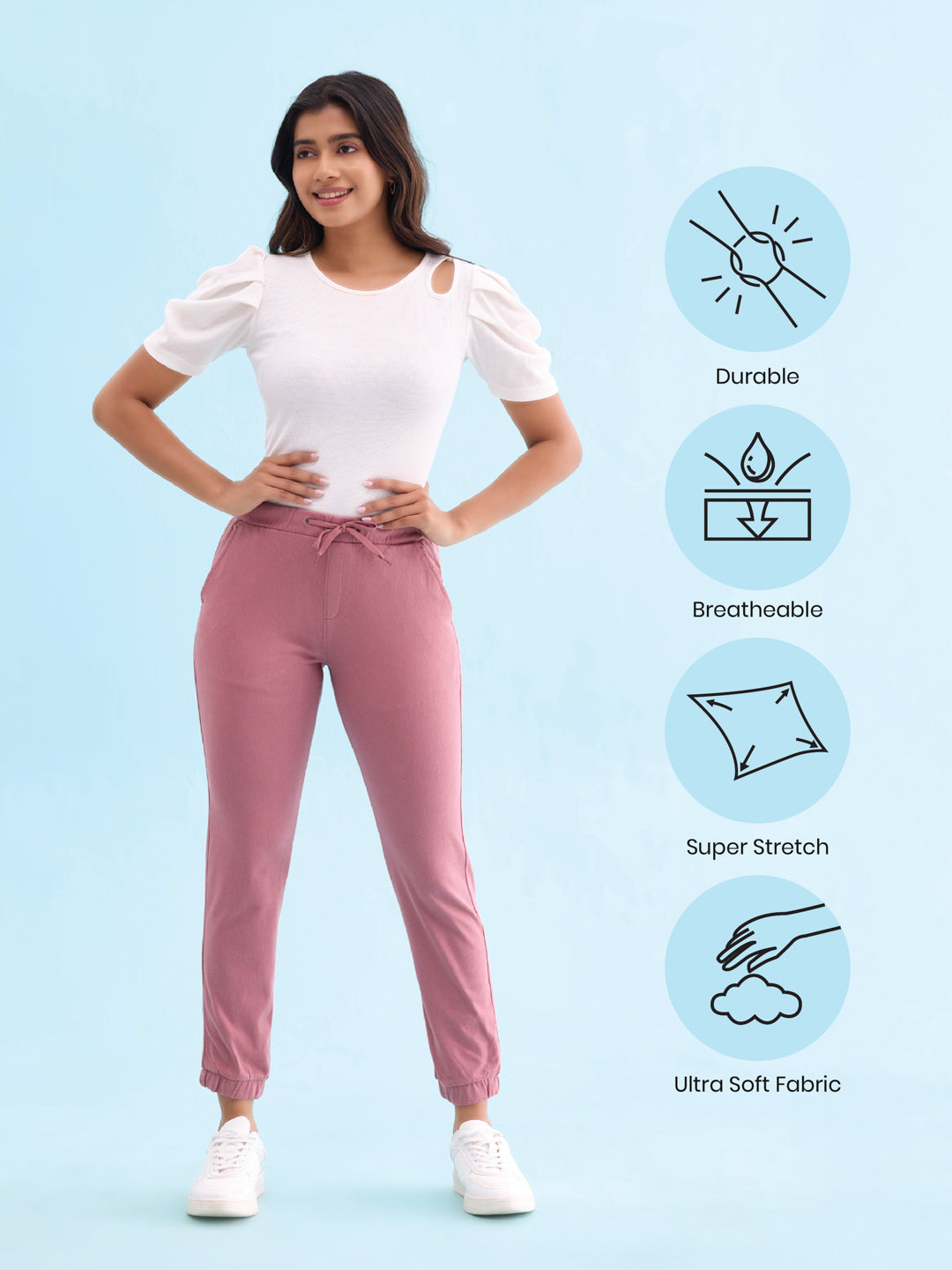 From running errands to casual chilling with friends, Solid Light Wine Joggers are your perfect pair of bottomwear. Made from cotton, polyester & elastane, it has elasticised waistband with drawstring closure, slant