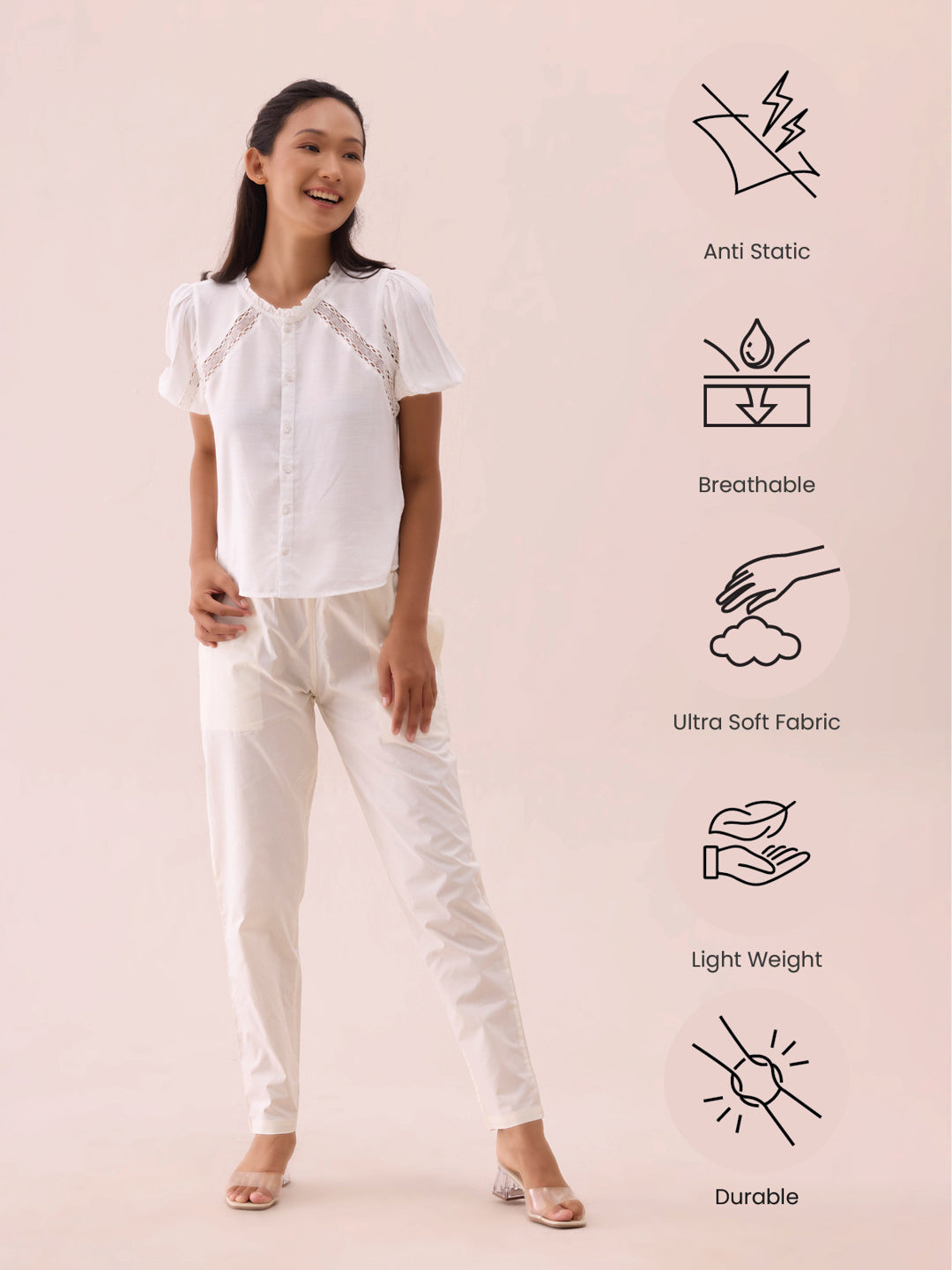 Go from casual to street smart look in a jiffy with the Solid Cream Cotton Pants. Made from cotton, it has a elasticised waistband with drawstring closure, slant pockets, mid rise & a tapered fit.