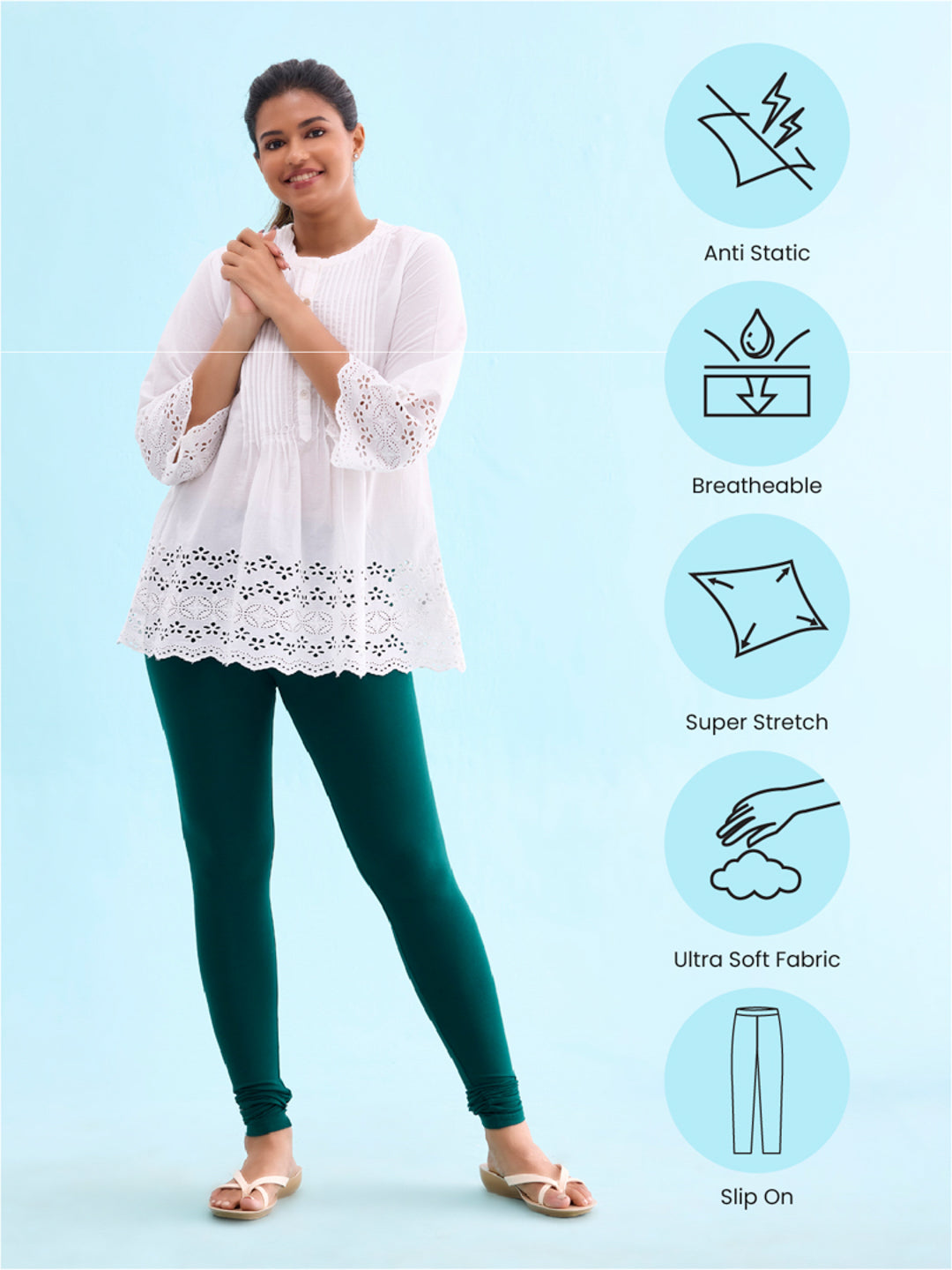 Go chic with a pair of Dark Green Solid Churidar Leggings. Made from high quality cotton, it has a elasticised waistband & gathers at the hemline.