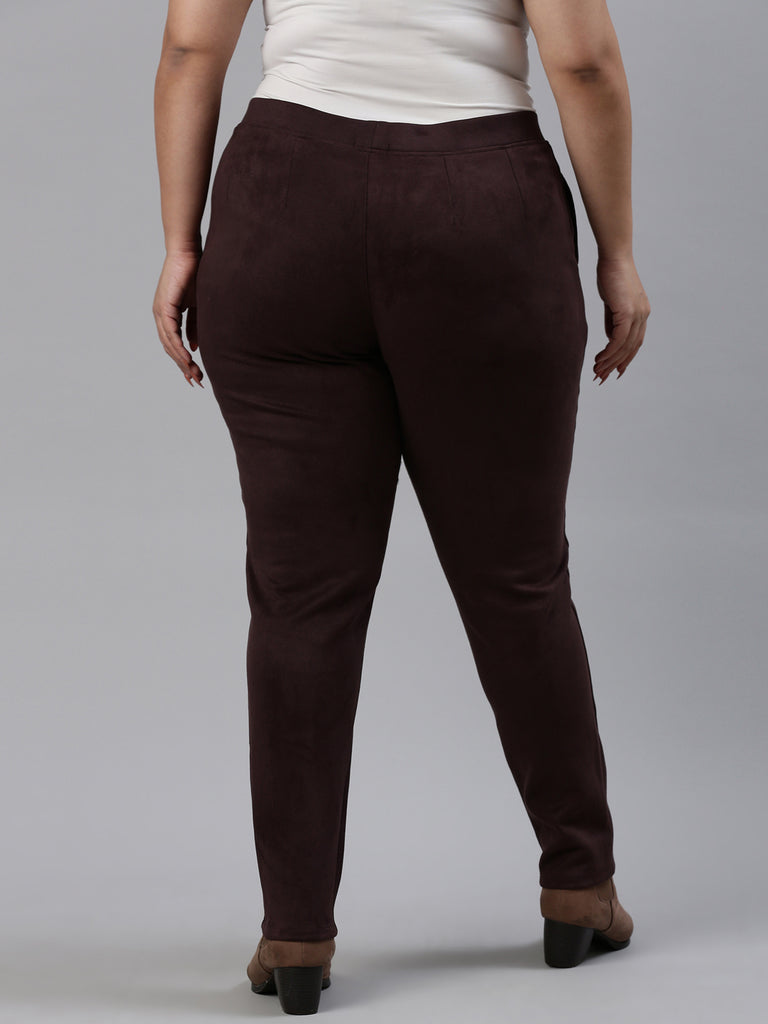 Stay warm this winter in the Solid Dark Wine Mid Rise Suede Treggings. Made from polyester & elastane, this mid rise slip on trousers with elasticised waistband & slim fit are perfect for board meetings or night out in the town.