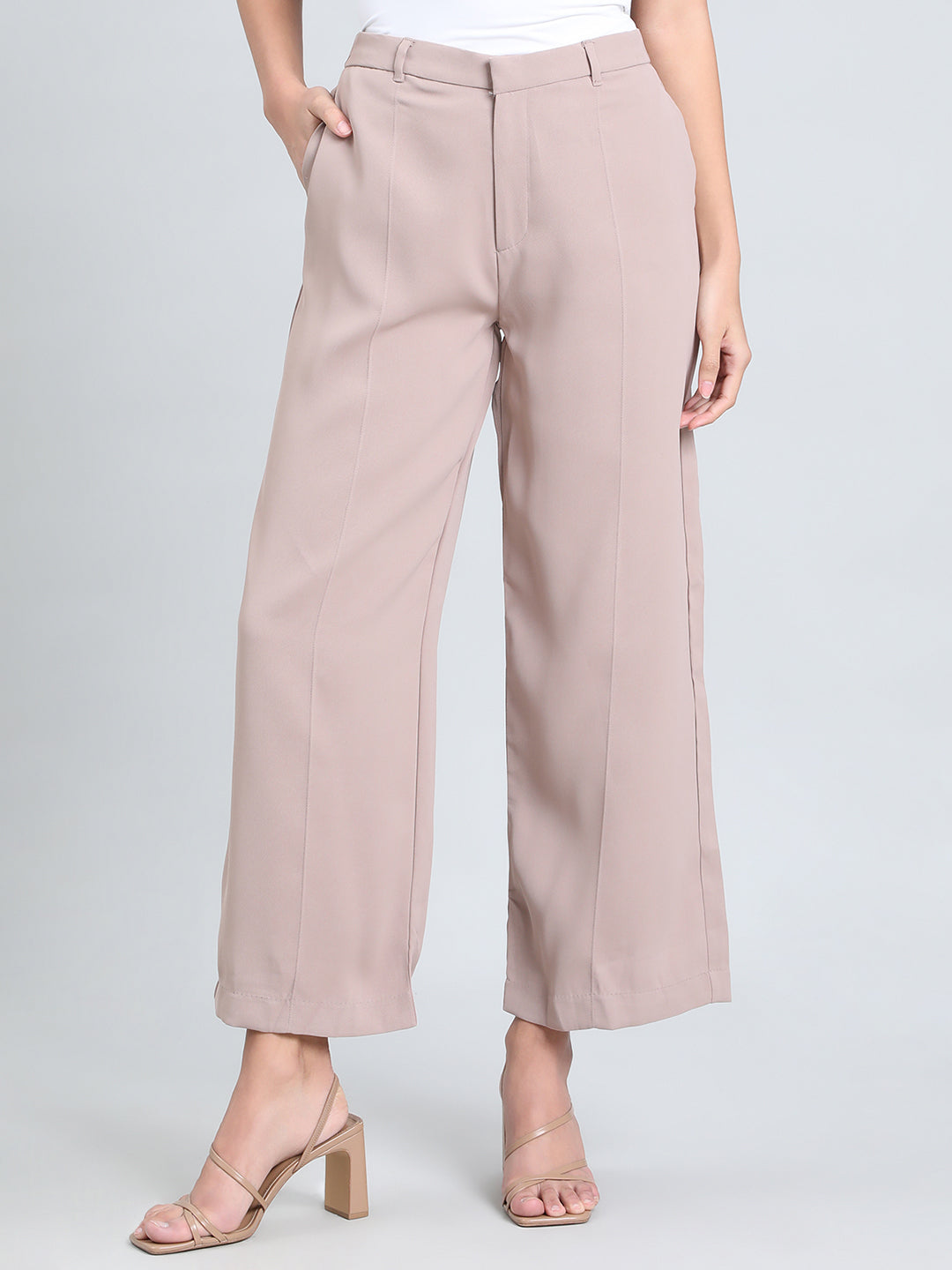 Be it a tunics or a top, these Dusty Pink Crepe Pants, with an elasticised waistband it fits the bill for every look. A pair of mid-rise Poly & Spandex wide ponte pants with an elasticised waistband, & a relaxed comfy fit.
