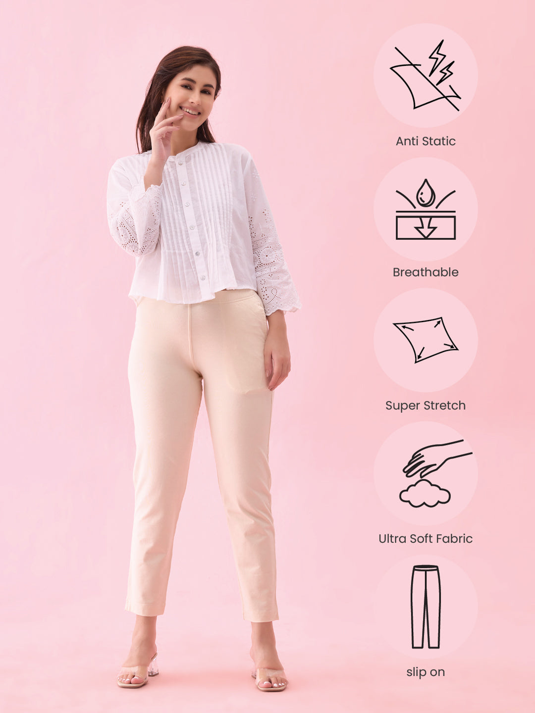 Amp up your style game for ethnic or western with our Solid Ecru Kurti Pants. Made from cotton & elastane, it is a mid-rise elasticised waistband pant with slant pocket & a tapered fit.