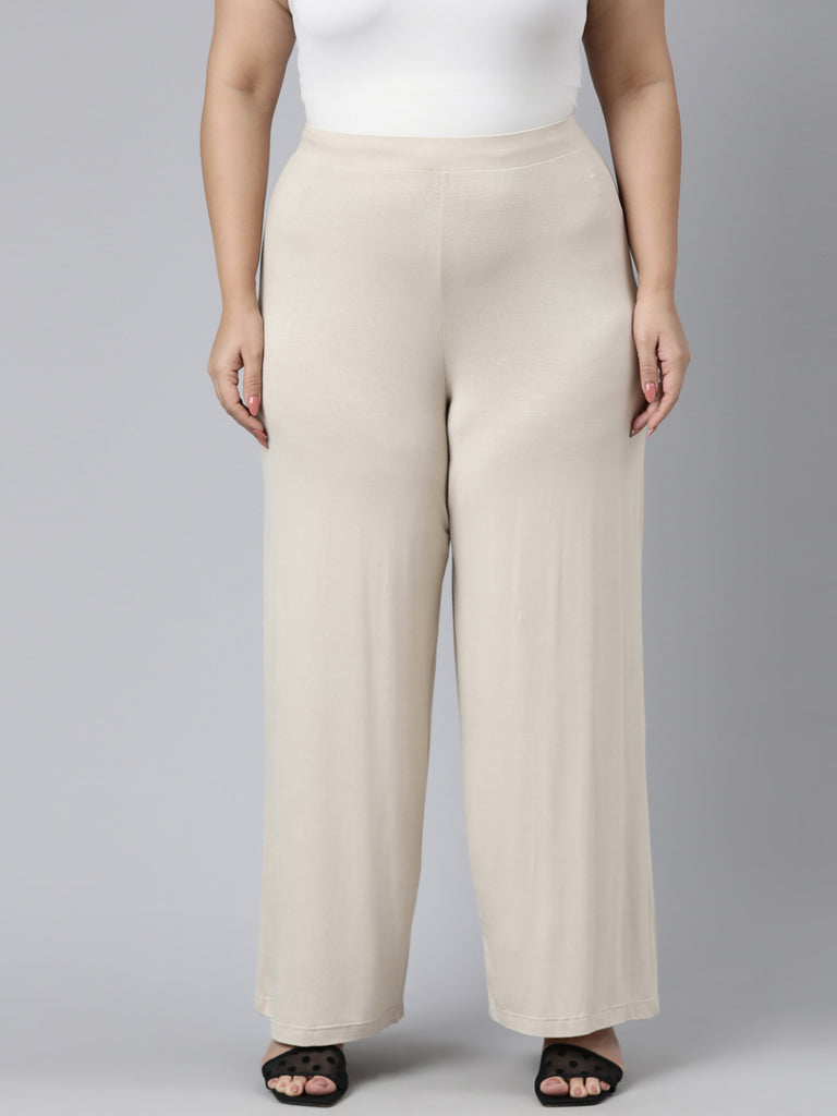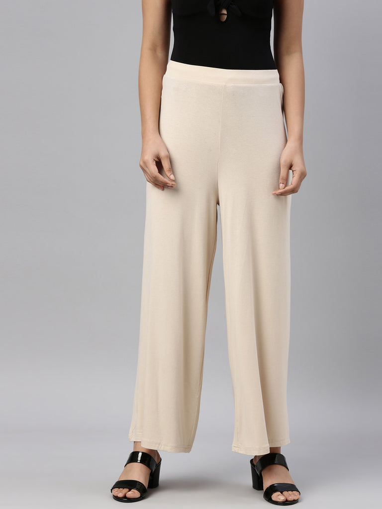 Spruce up a look in the Light Beige Palazzo Pants. Made from viscose & rayon, it has a elasticised waistband & a mid-rise fit.