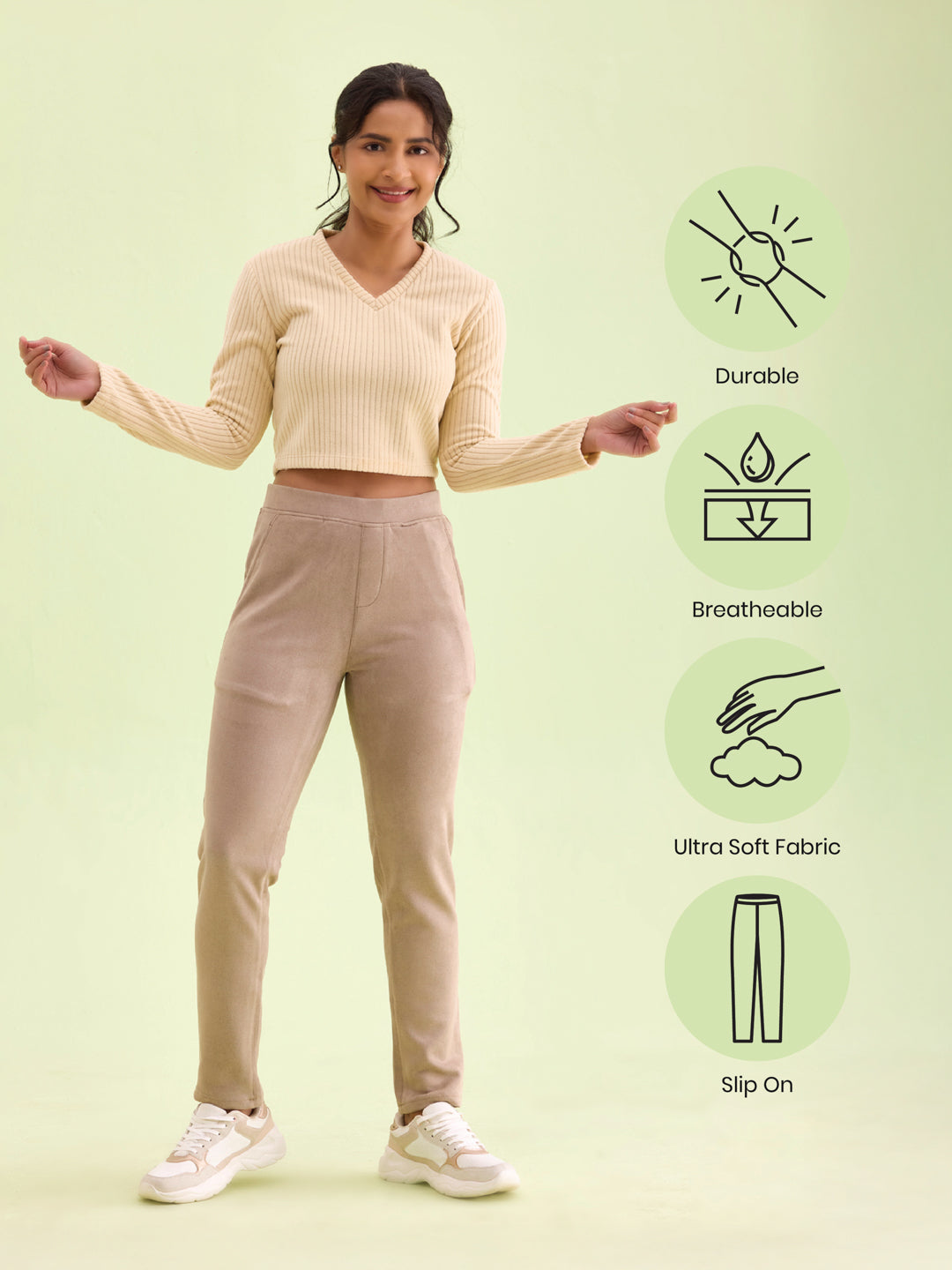 Stay warm this winter in the Solid Light Brown Mid Rise Suede Treggings. Made from polyester & elastane, this mid rise slip on trousers with elasticised waistband & slim fit are perfect for board meetings or night out in the town.