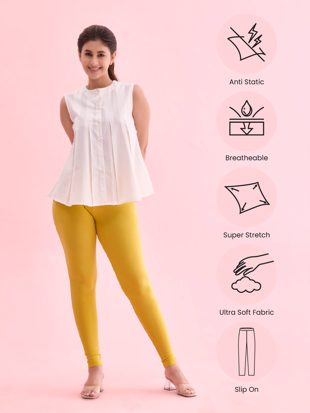 Complete any look, be it traditional or western with these Solid Light Lime Leggings. Made from cotton & elastane, it has a elasticised waistband & has a slim fit.