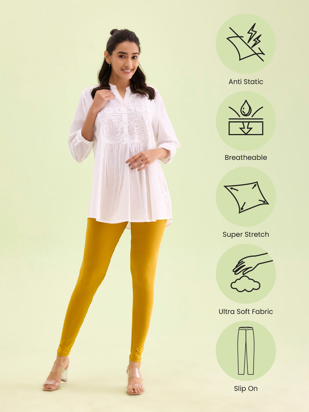 Light Mustard Cotton Stretch Ankle Length Leggings