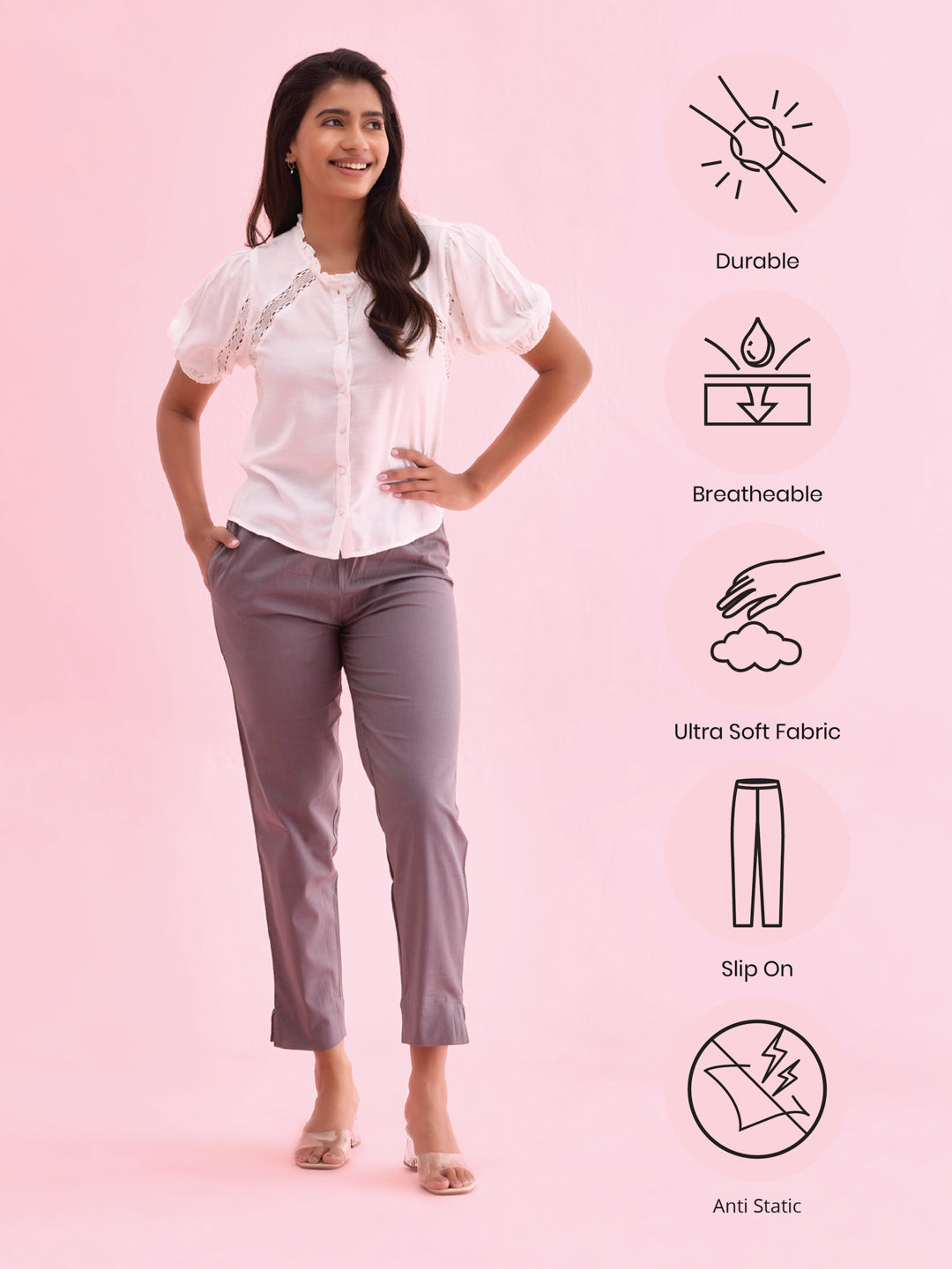 Go from board room to a brunch meeting in a snap with the Medium Grey Cotton Pencil Pants. Made from Cotton, it has a elasticised waistband with side pockets & a relaxed fit.