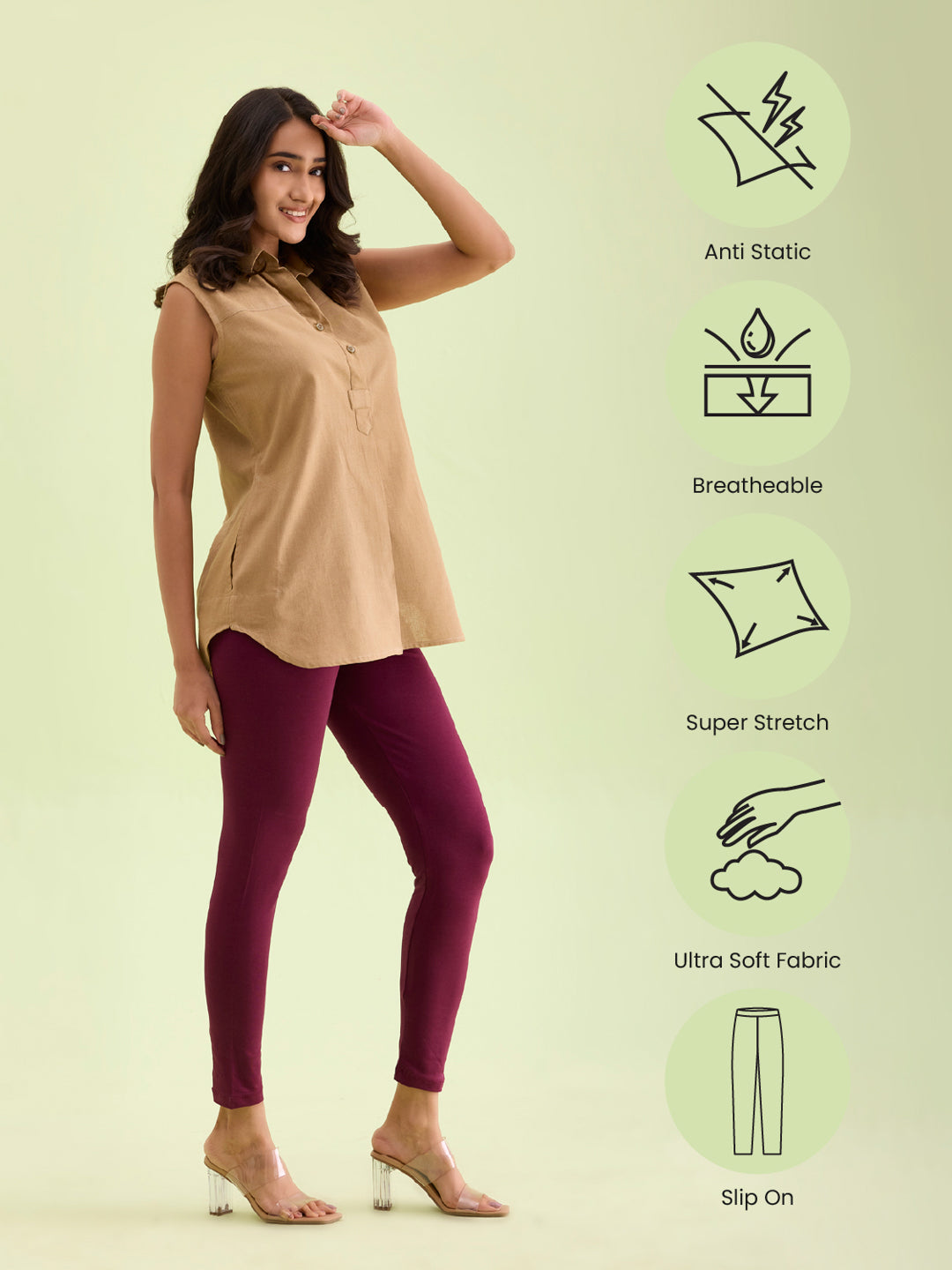 Complete any look, be it traditional or western with these Solid Medium Violet Leggings. Made from cotton & elastane, it has a elasticised waistband & has a slim fit.