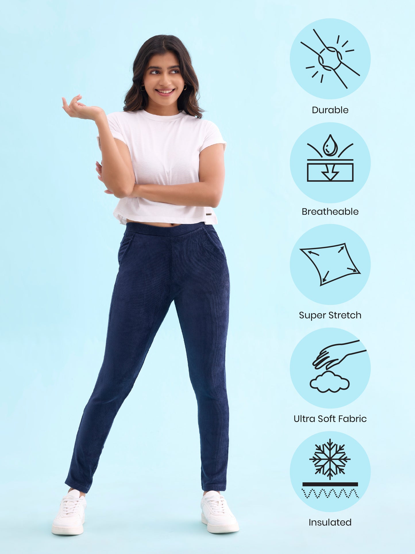 Navy Cotton Polyester Corduroy Jeggings