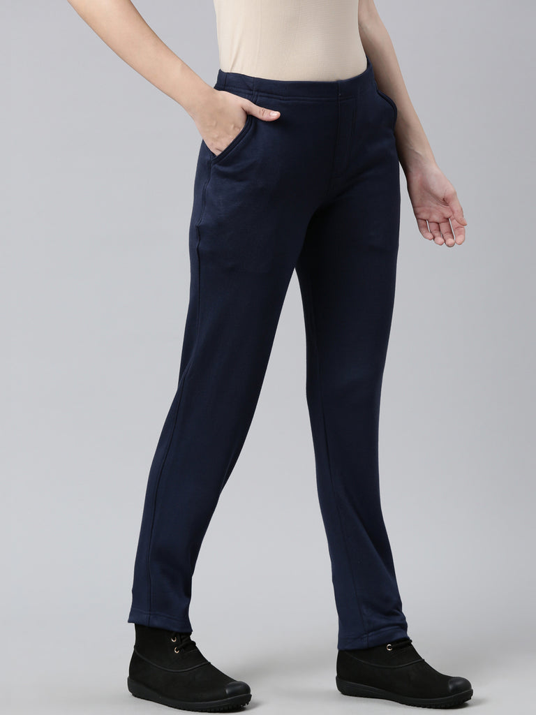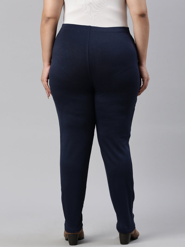 Stay warm this winter in the Solid Navy Mid Rise Ultra Warm Treggings. Made from Fleece, this mid rise slip on trousers with elasticised waistband & slim fit are perfect for board meetings or night out in the town. It has two side pockets with ankle length.