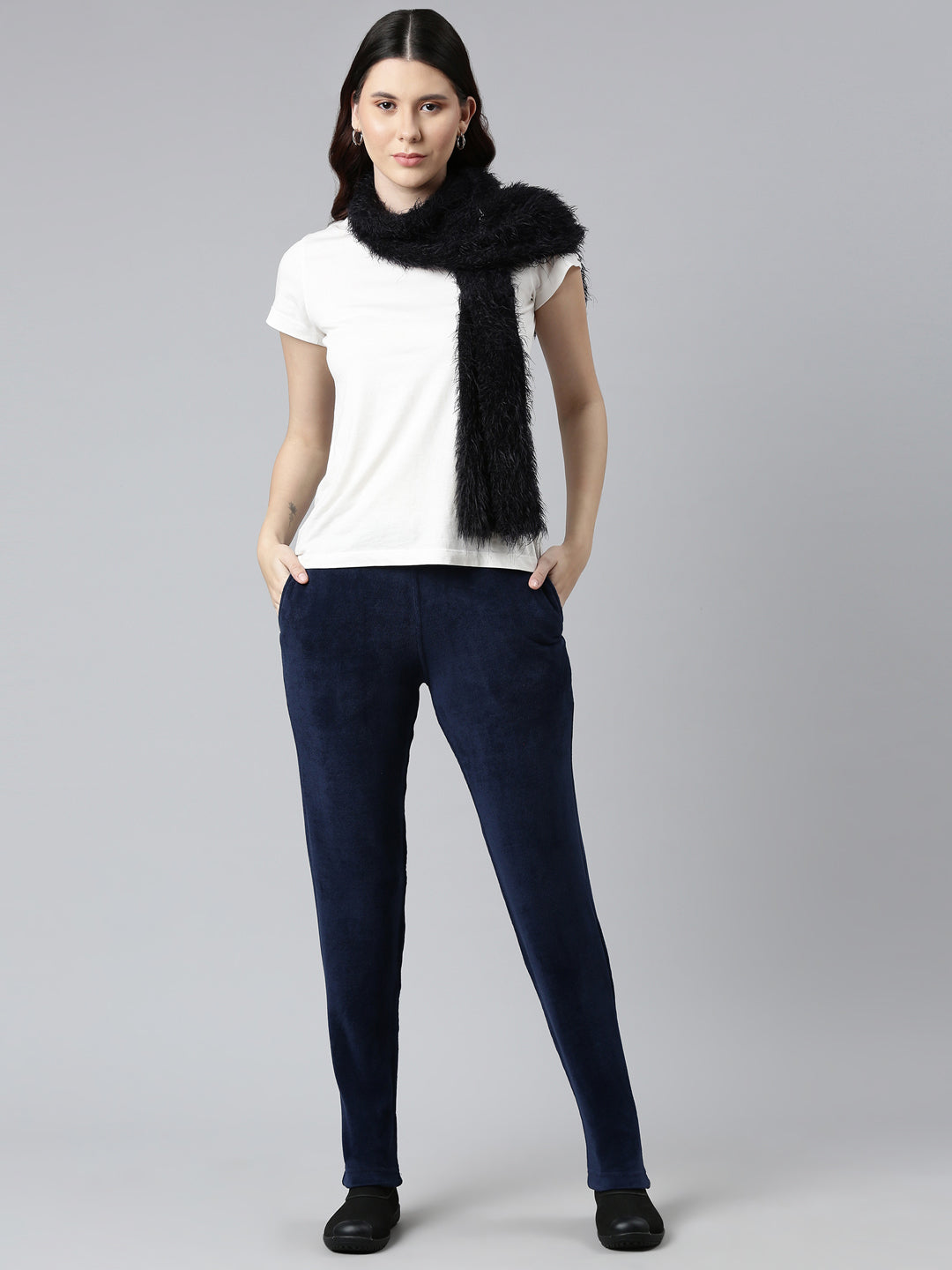 Freezing in your place? Don't fret, our Solid Navy Ultra Warm Pants are perfcet to keep you warm & cozy. Made from velour, it has a elasticised waistband, two side pockets & a relaxed fit.