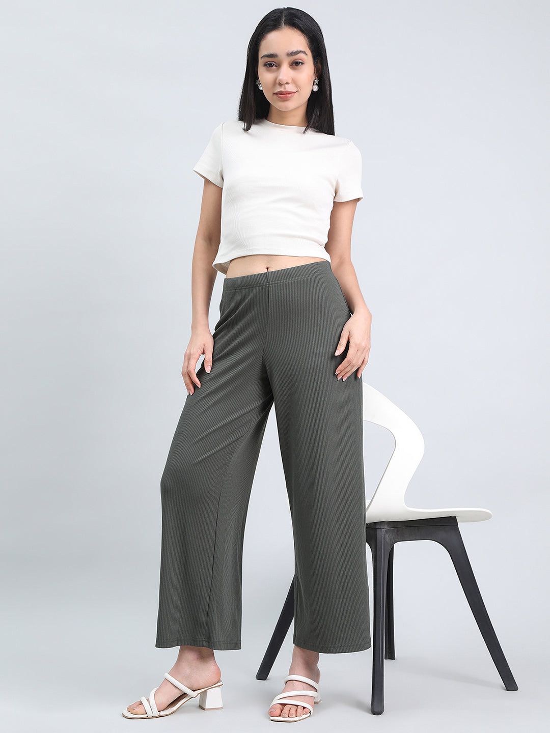 Spruce up a look in the Olive Palazzo Pants. Made from viscose & rayon, it has a elasticised waistband & a mid-rise fit.