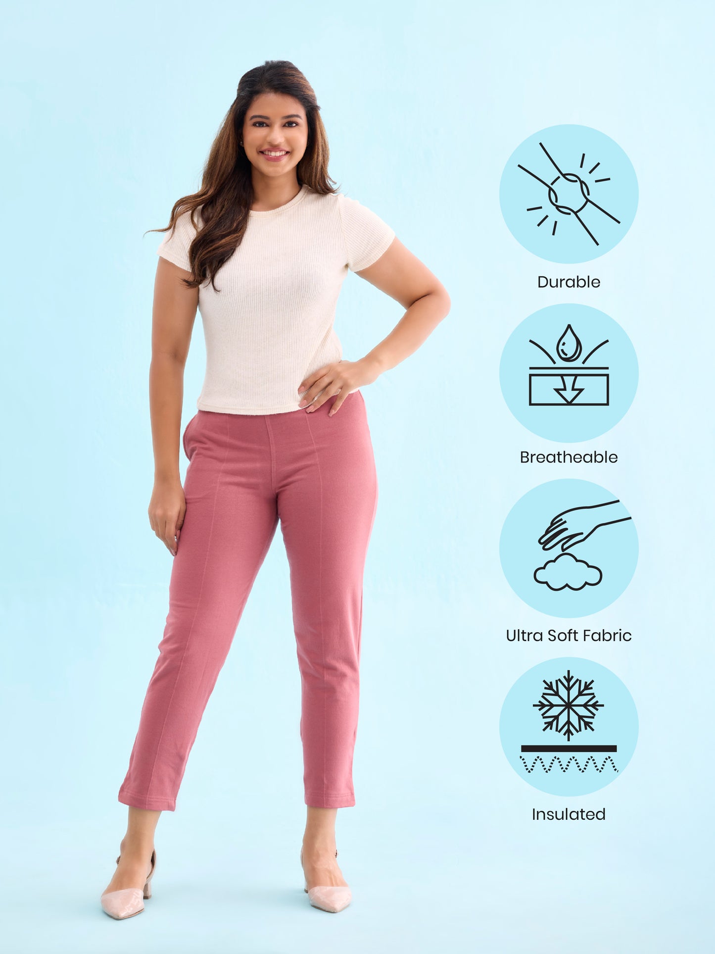Freezing in your place? Don't fret, our Solid Rusty Pink Warm Kurti Pant are perfect to keep you warm & cozy. Made from fleece, it has a elasticized waistband, slant pockets & a tapered fit.