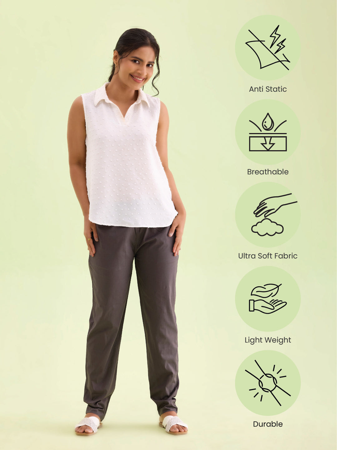 Go from casual to street smart look in a jiffy with the Solid Silver Grey Cotton Pants. Made from cotton, it has a elasticised waistband with drawstring closure, slant pockets, mid rise & a tapered fit.