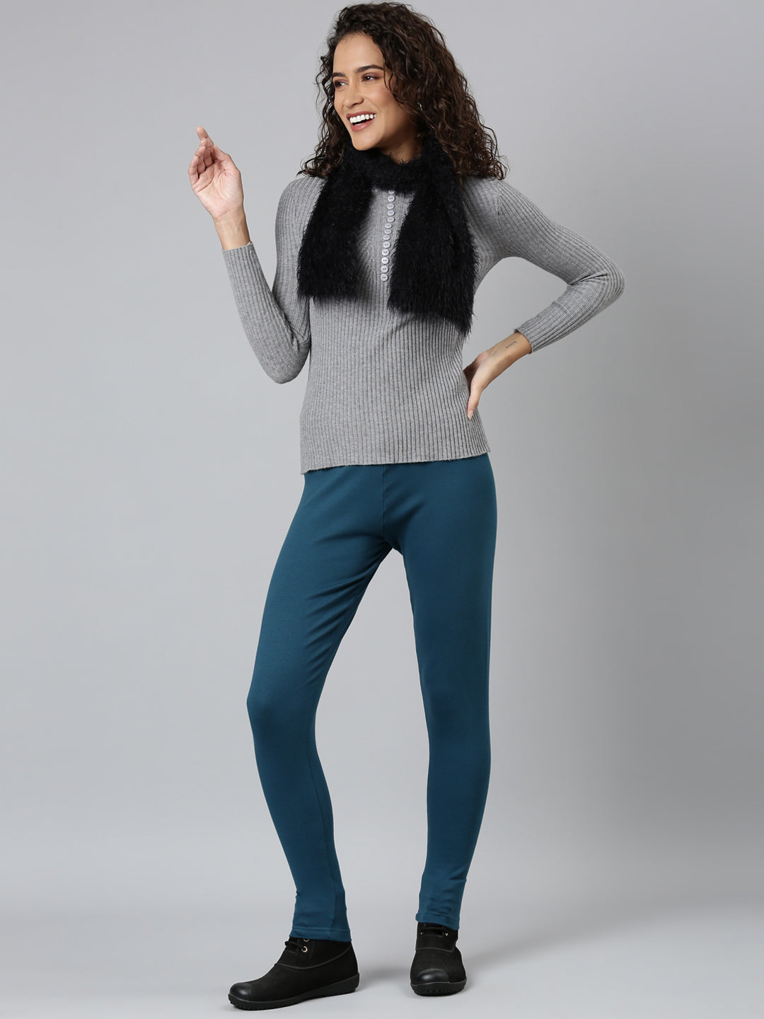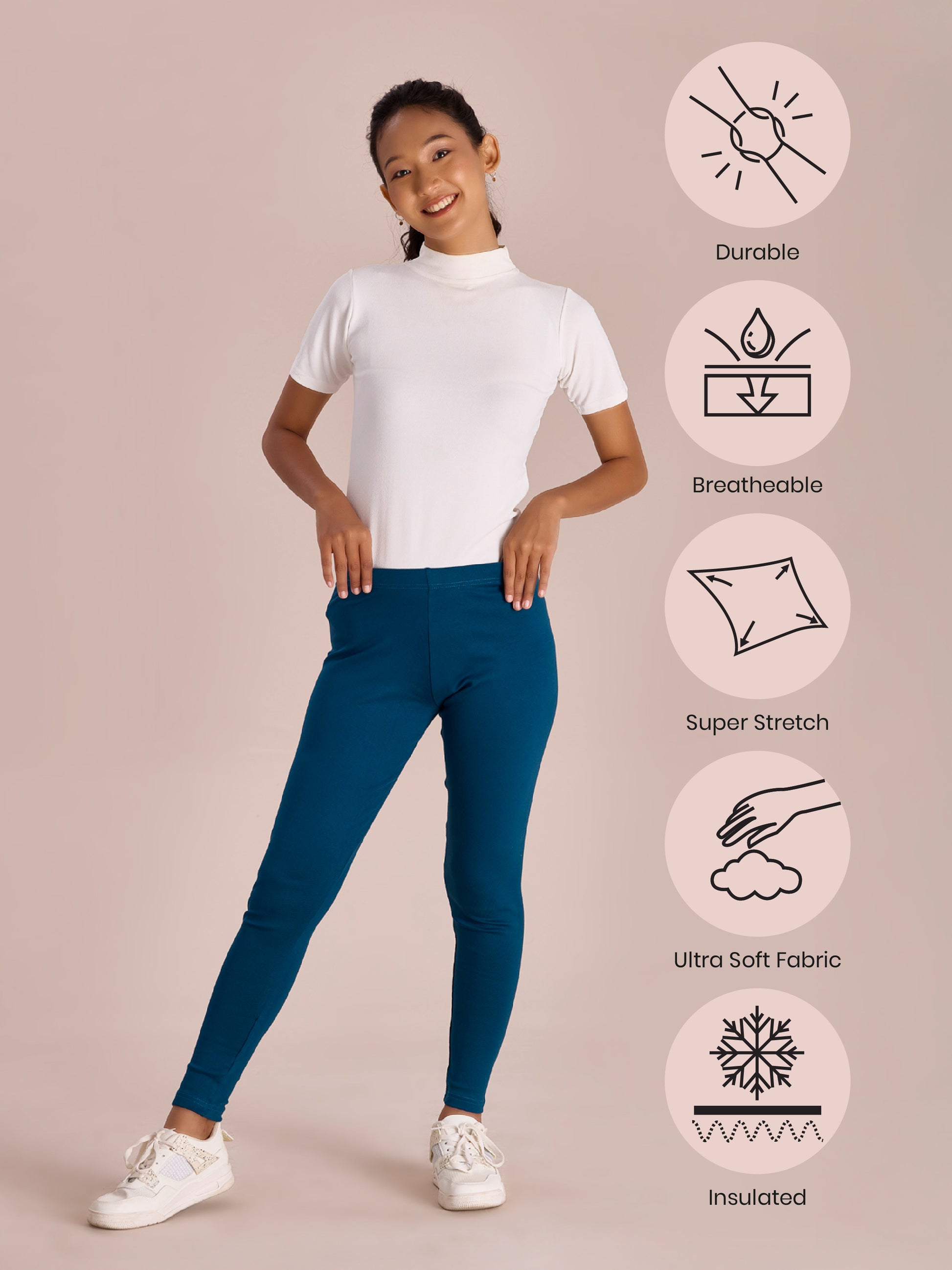 Turquoise Blue Cotton Stretch Ribbed warm Leggings