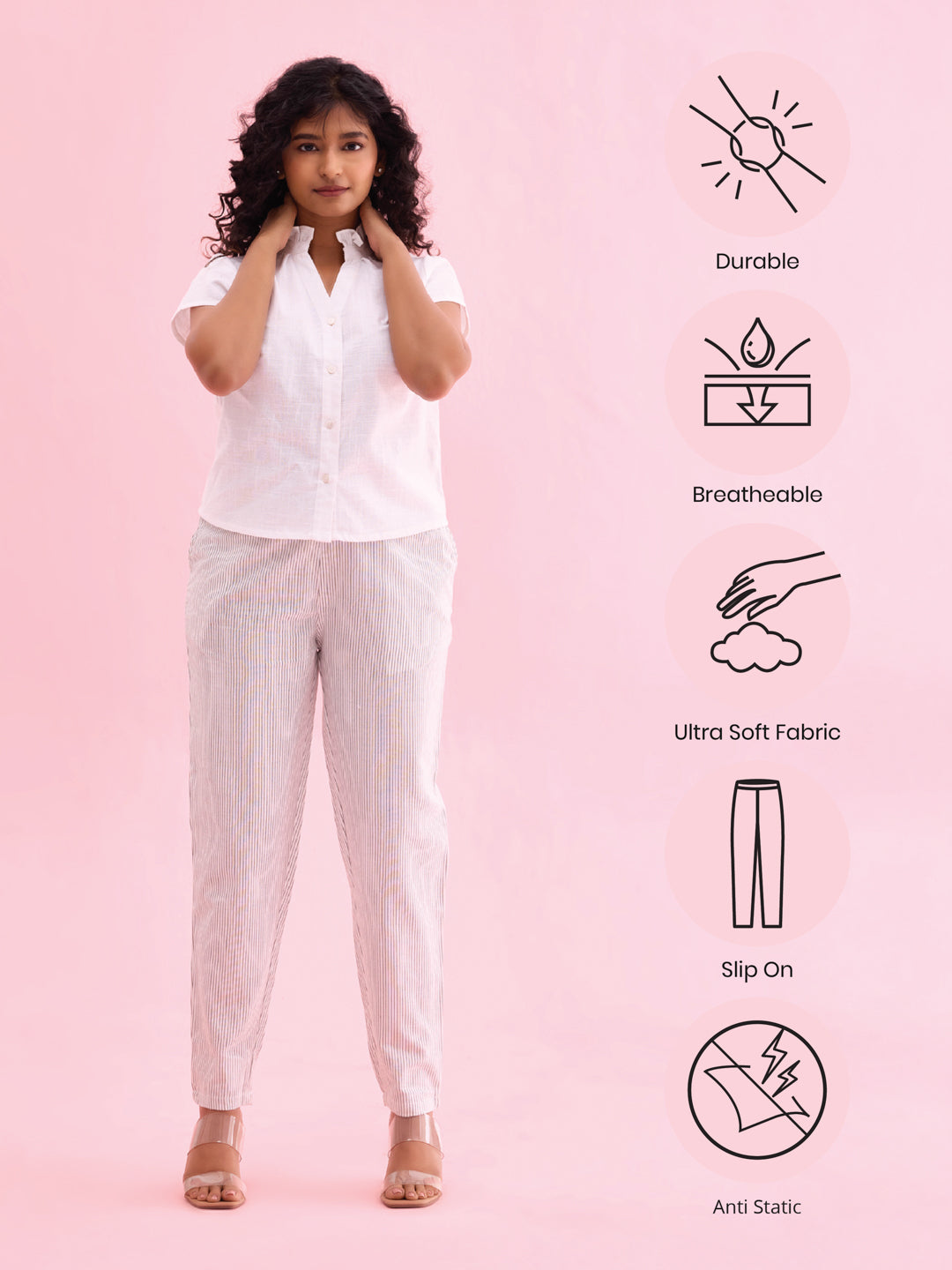 Go from board room to a brunch meeting in a snap with the Striped White Linen Pencil Pants. Made from cotton & elastane, it has a elasticised waistband with a drawstring closure, slant pockets & a tapered fit.
